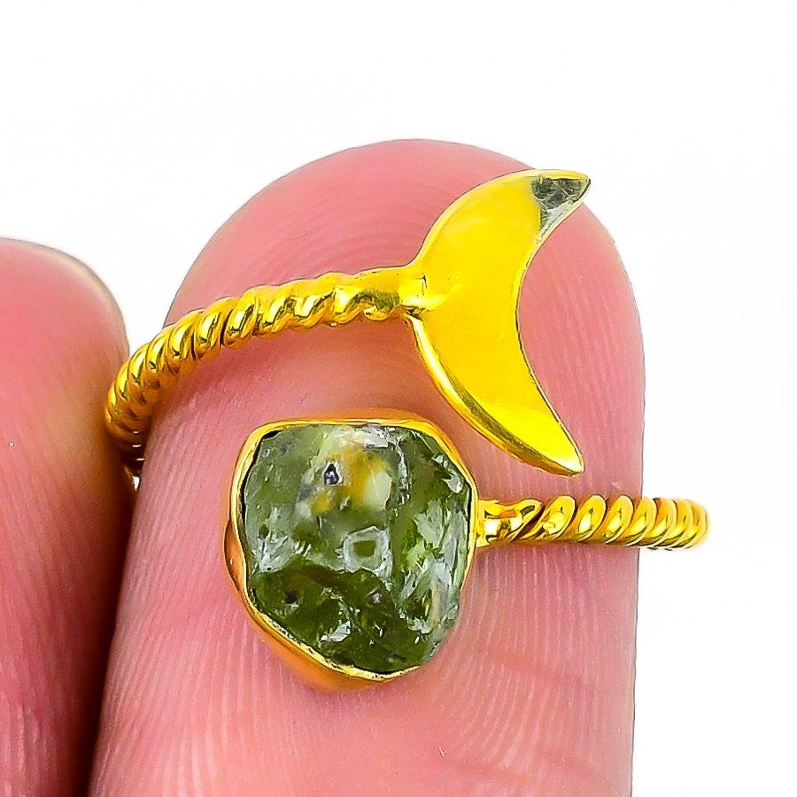 Natural Peridot Sterling Silver Gold Vermeil Boho Statement Mother Ring Size 6.5