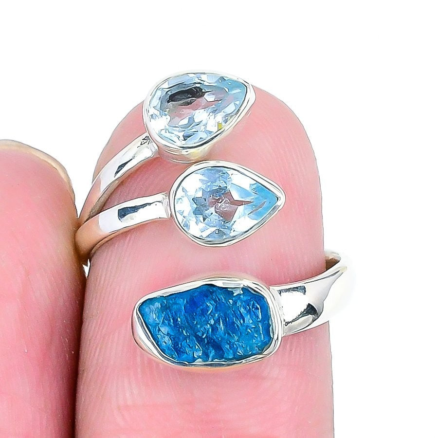 Apatite Rough Stone Elegant Cluster Daughter Ring Jewelry Size 7 Solid Silver