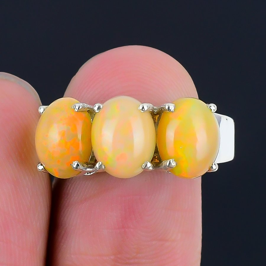 Ethiopian Opal Stone Wedding Statement Wife Ring Size 7.5 925 Sterling Silver