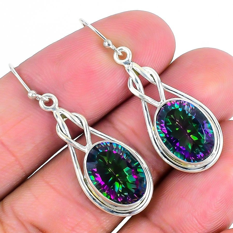 Mystic Topaz Gemstone 925 Sterling Silver New Dangling Birthday Earrings Jewelry