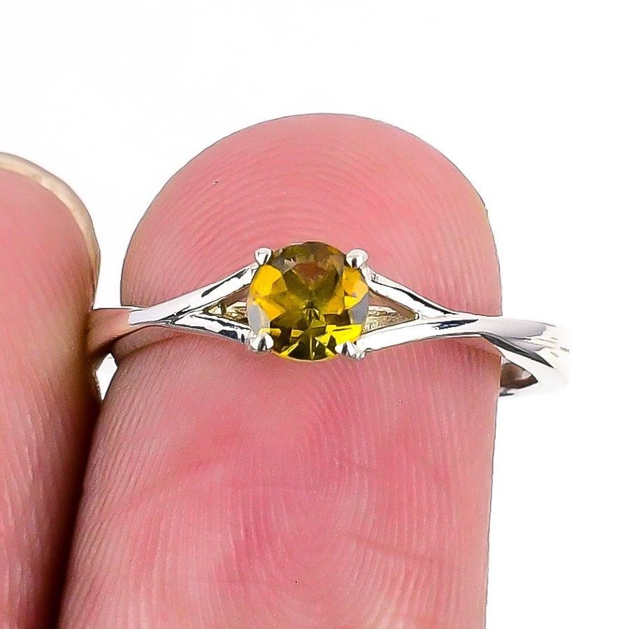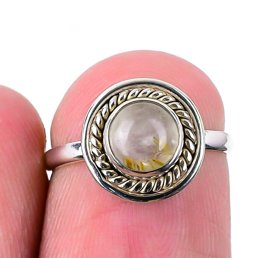 Golden Rutile Stone 925 Solid Silver Daughter New Statement Art Deco Ring US 4.5