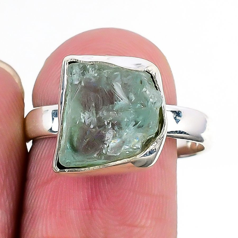 Throat Chakra Natural Aquamarine Solid Silver Statement Ring Jewelry Size 8.5