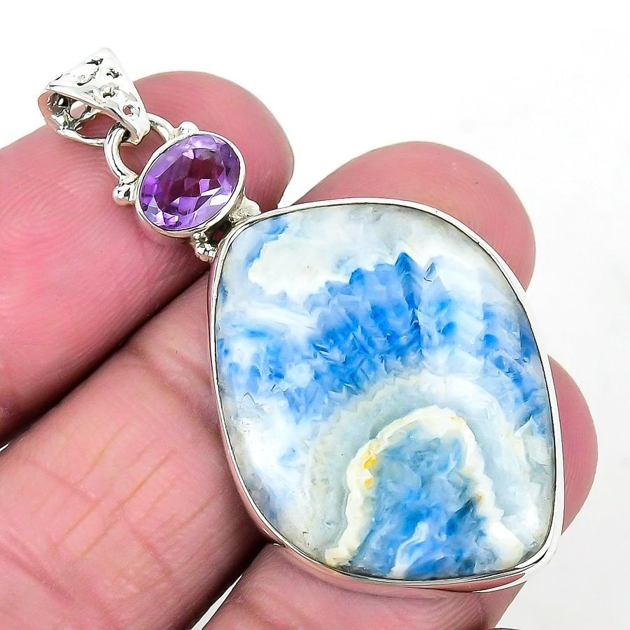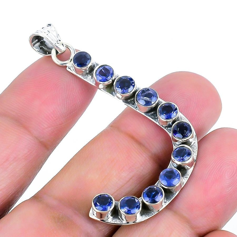 Natural Iolite Solid Sterling Silver Mother Handcrafted Elegant Pendant Jewelry