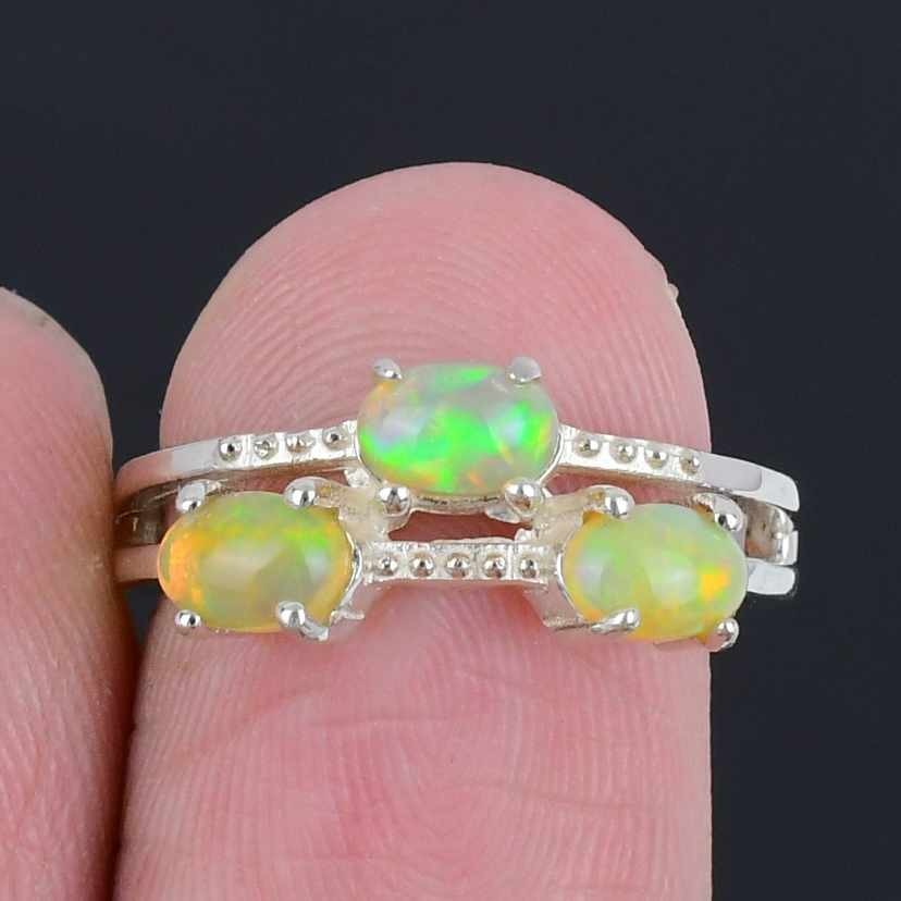 Ethiopian Opal Gemstone Sterling Silver Daughters Day Ethnic Cluster Ring Size 7