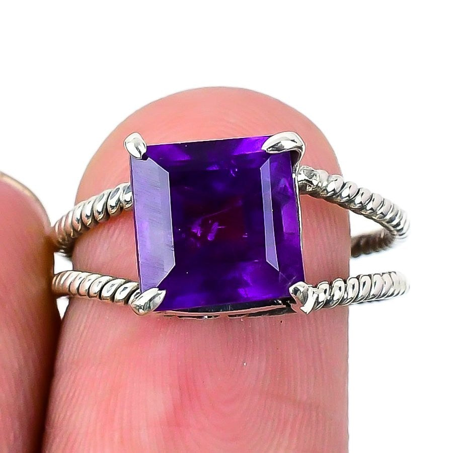 February Natural Amethyst Sterling Silver Statement Wedding Ring Jewelry US 8.5