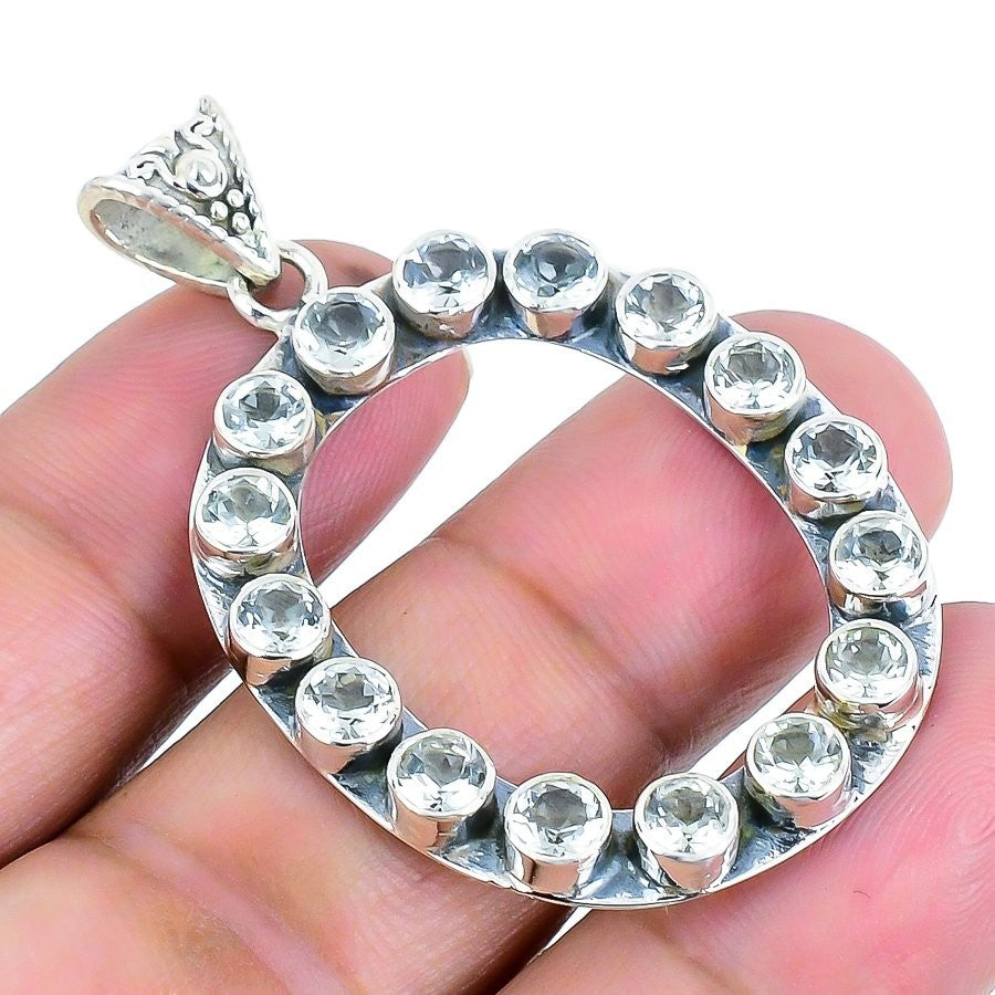 White Topaz Stone Sterling Silver Daughter Handcrafted Crown Chakra New Pendant