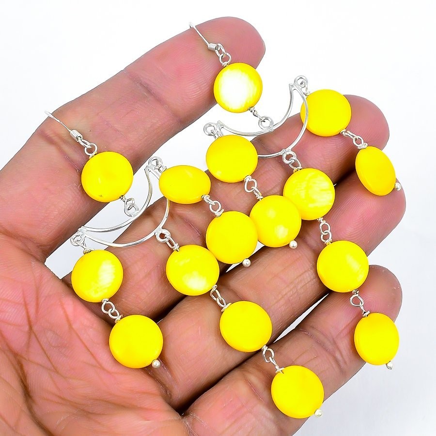 Yellow Blister Pearl Stone 925 Silver Drop Ethnic Artisan Boho Earrings Jewelry
