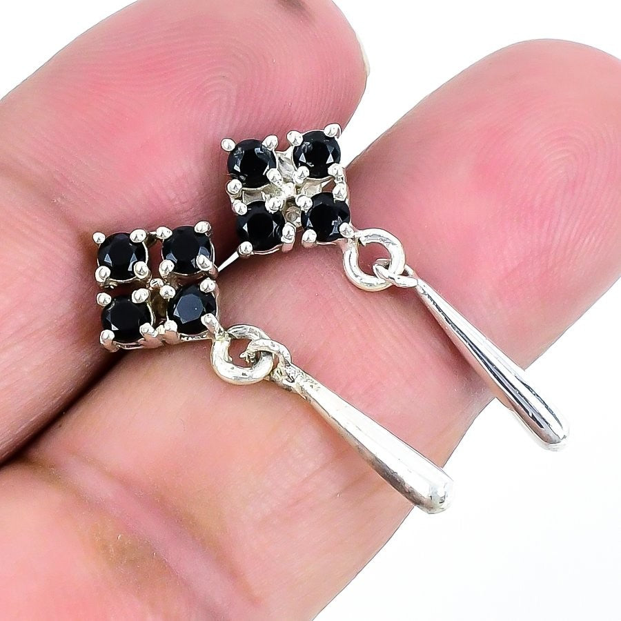 Natural Black Spinel 925 Silver Unique Push Back Sister Dangling New Earrings