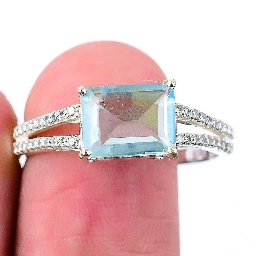 Aquamarine Gemstone Solid Silver Trendy New Statement Daughters Day Ring Size 11