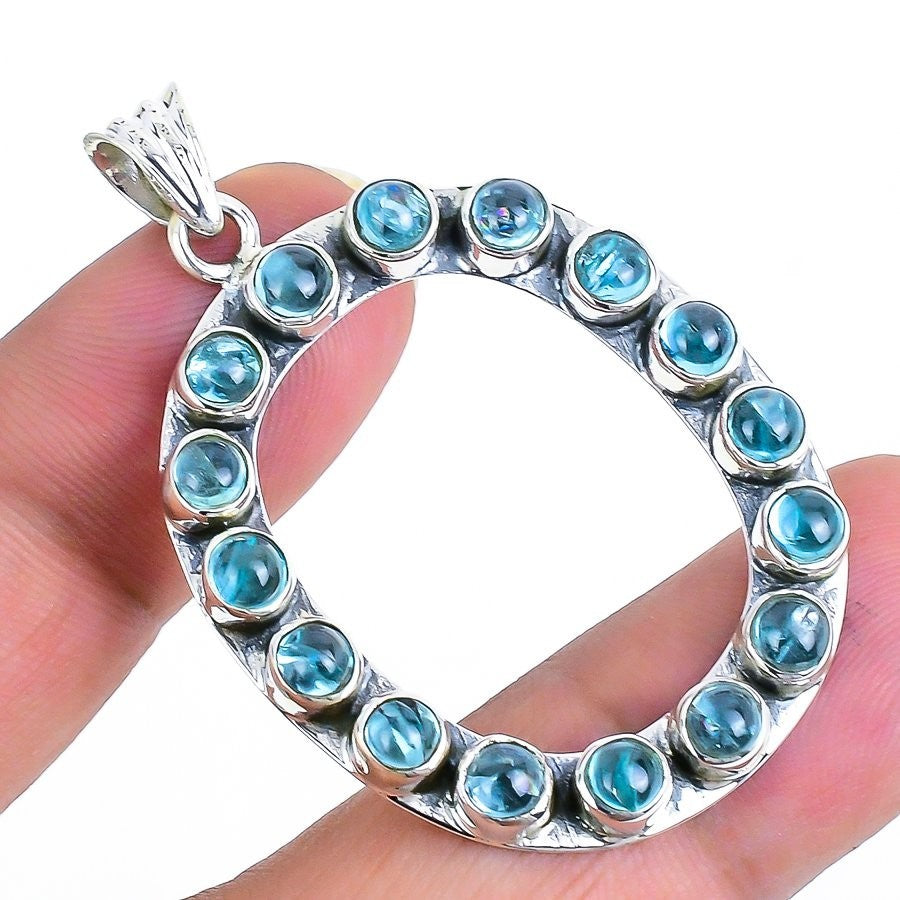 Throat Chakra Neon Apatite Gemstone Solid Sterling Silver Handmade Boho Pendant