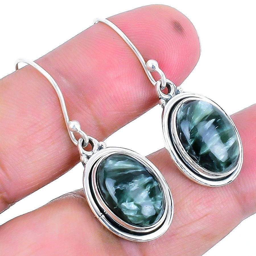 Seraphinite Gemstone 925 Sterling Silver Drop Dangle Elegant Earrings Jewelry
