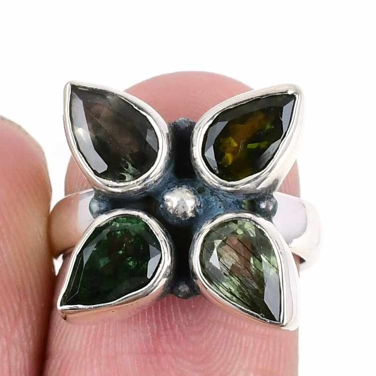 Natural Multi Tourmaline Solid Silver Cluster Elegant Daughter Boho Ring Size 6
