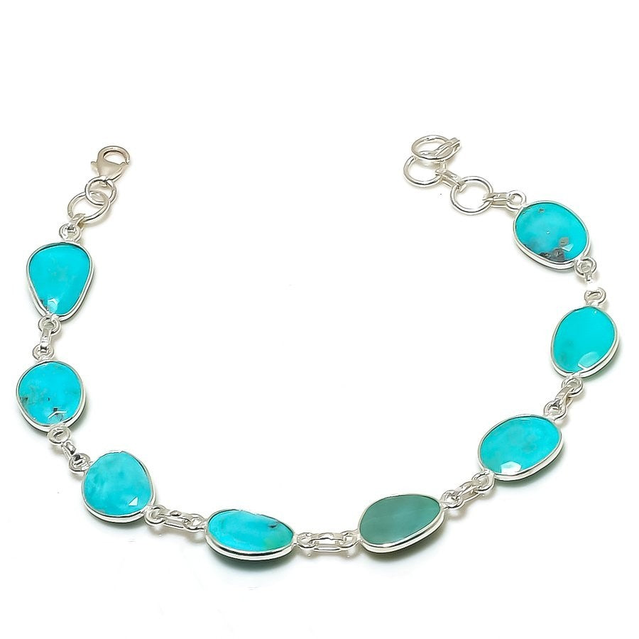 Natural Arizona Turquoise Sister Chain Boho Bracelet Jewelry 925 Sterling Silver