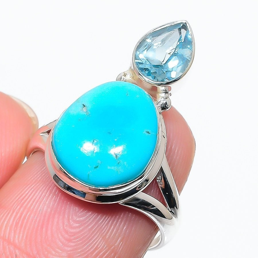 Arizona Turquoise Stone Daughter Cluster Ring Jewelry Size 7 925 Sterling Silver