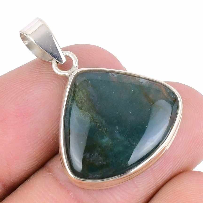 Green Moss Agate Gemstone Art Deco Wife Anniversary New Pendant Sterling Silver