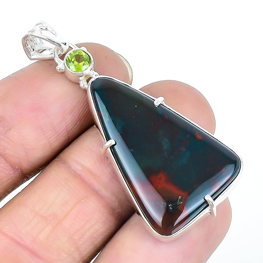 March Birth Bloodstone Stone 925 Sterling Silver Art Deco Handcrafted Pendant