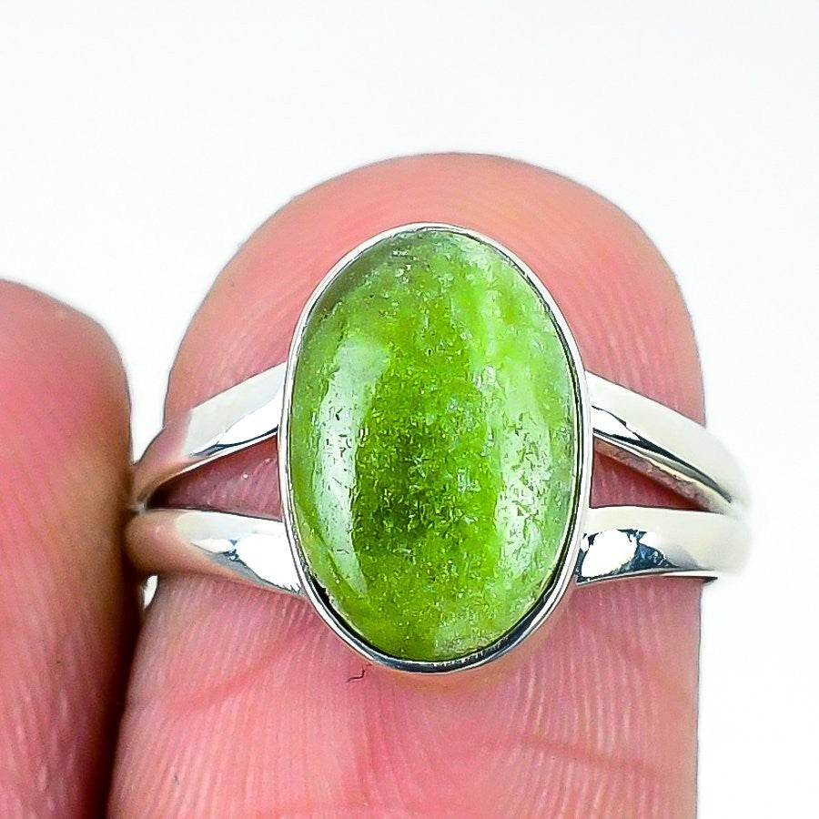 Natural Green Kyanite 925 Silver Art Deco Band Daughters Day Ring Jewelry US 6