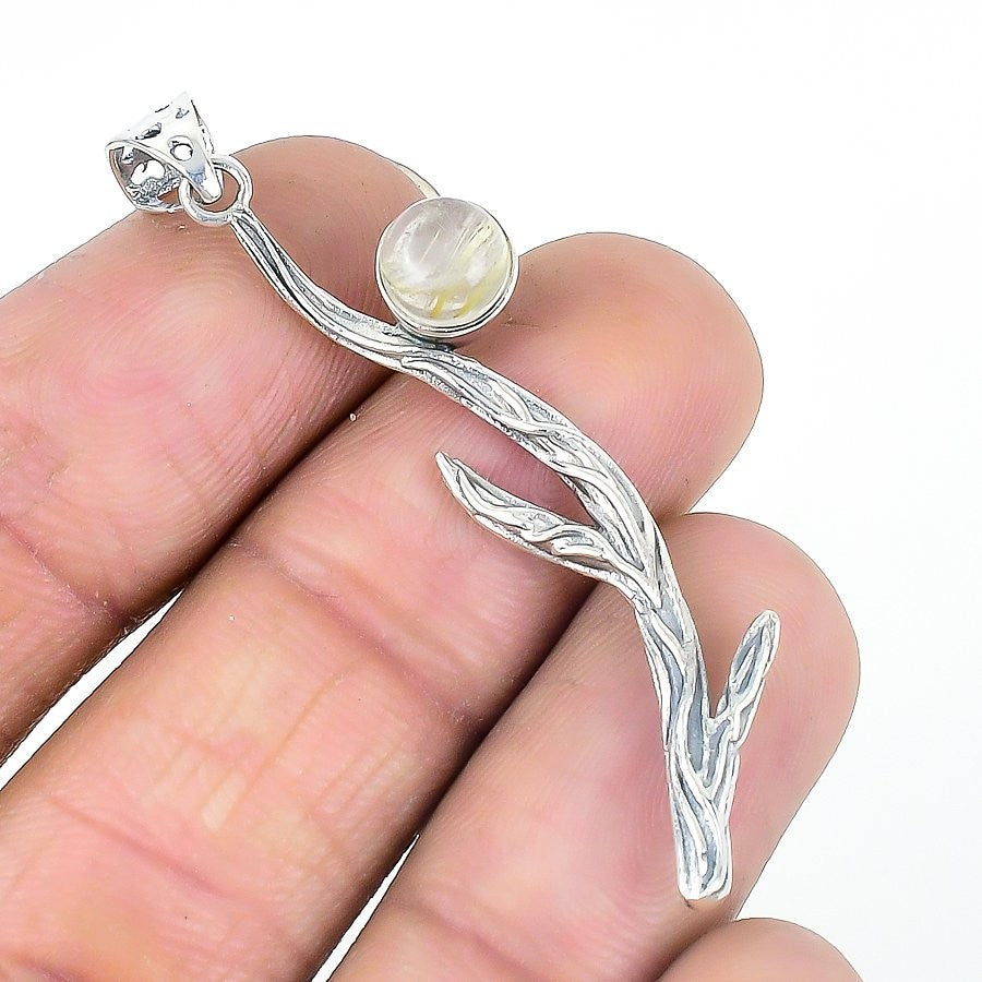Golden Rutile Stone 925Ā SolidĀ Silver Wife Art Deco Handmade Boho Pendant Jewelry