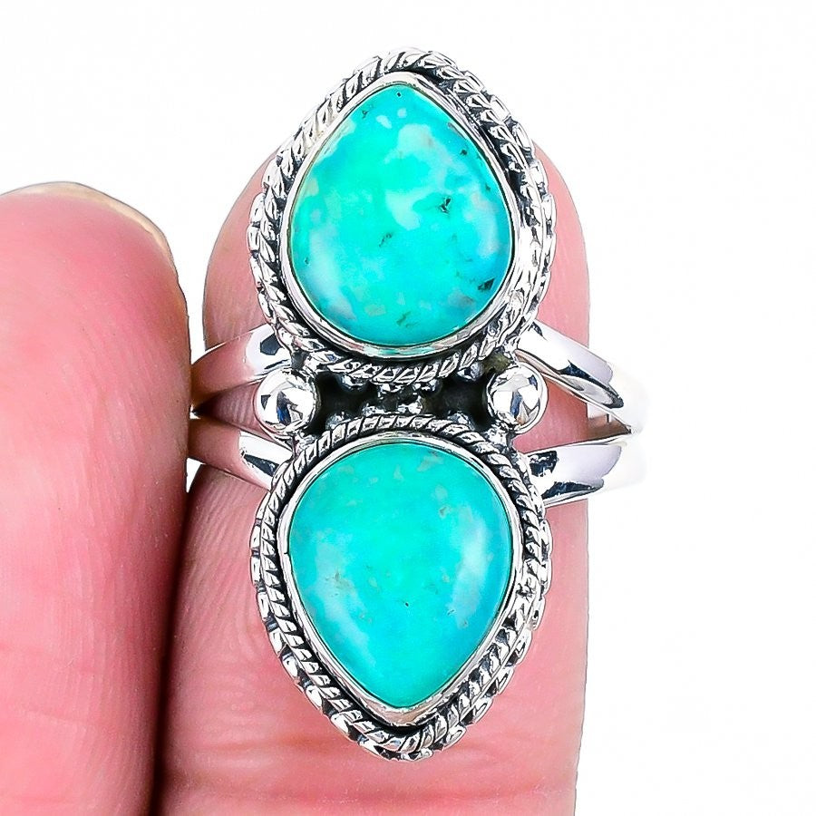 Natural Turquoise Solid Sterling Silver Cluster December Birth New Ring Size 7.5