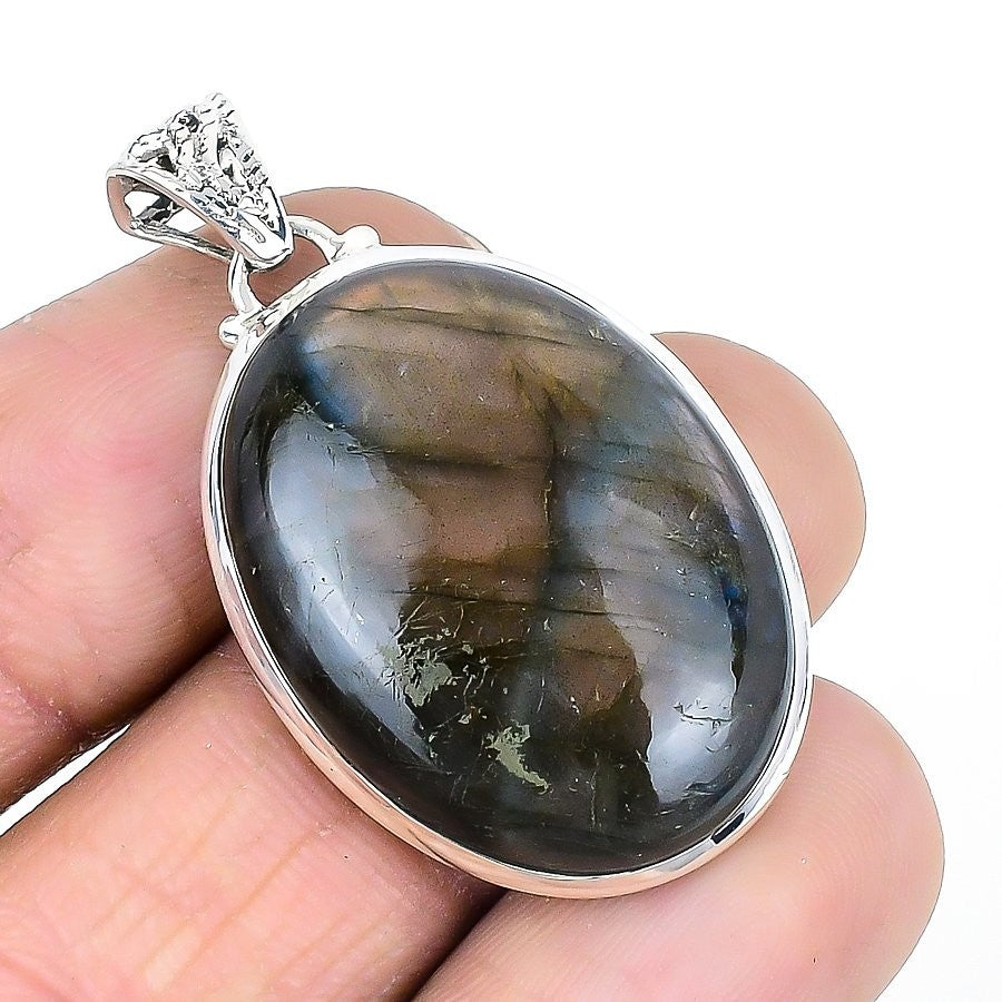 Natural Labradorite 925 Sterling Silver Engagement Daughter Gift Artisan Pendant