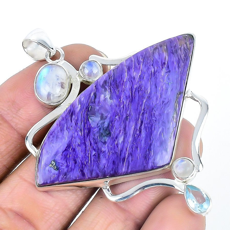 Natural Russian Charoite Solid Silver Birthday Engagement Daughter Gift Pendant