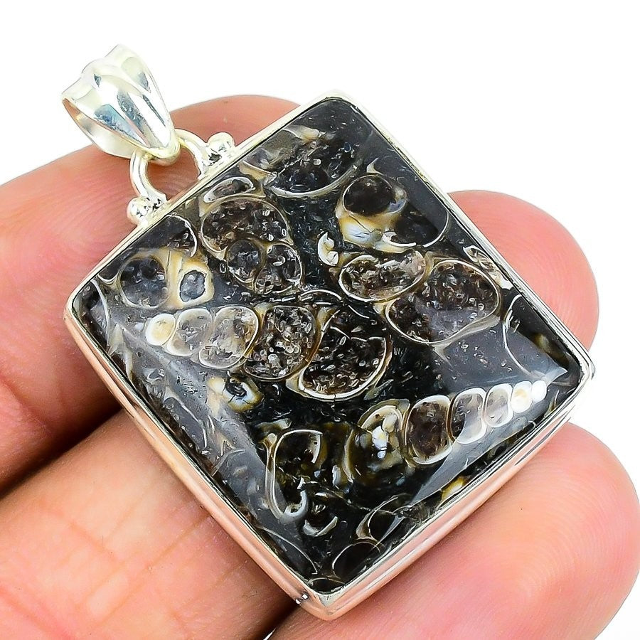Turtilla Fossil Stone 925Ā SolidĀ Silver Best Daughters Gift Wife Ethnic Pendant