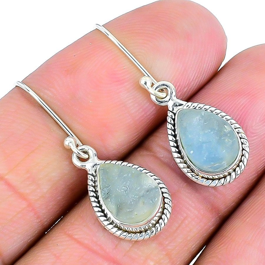Blue Lace Agate Gemstone Dangling Artisan Daughter Gift Earrings Solid Silver