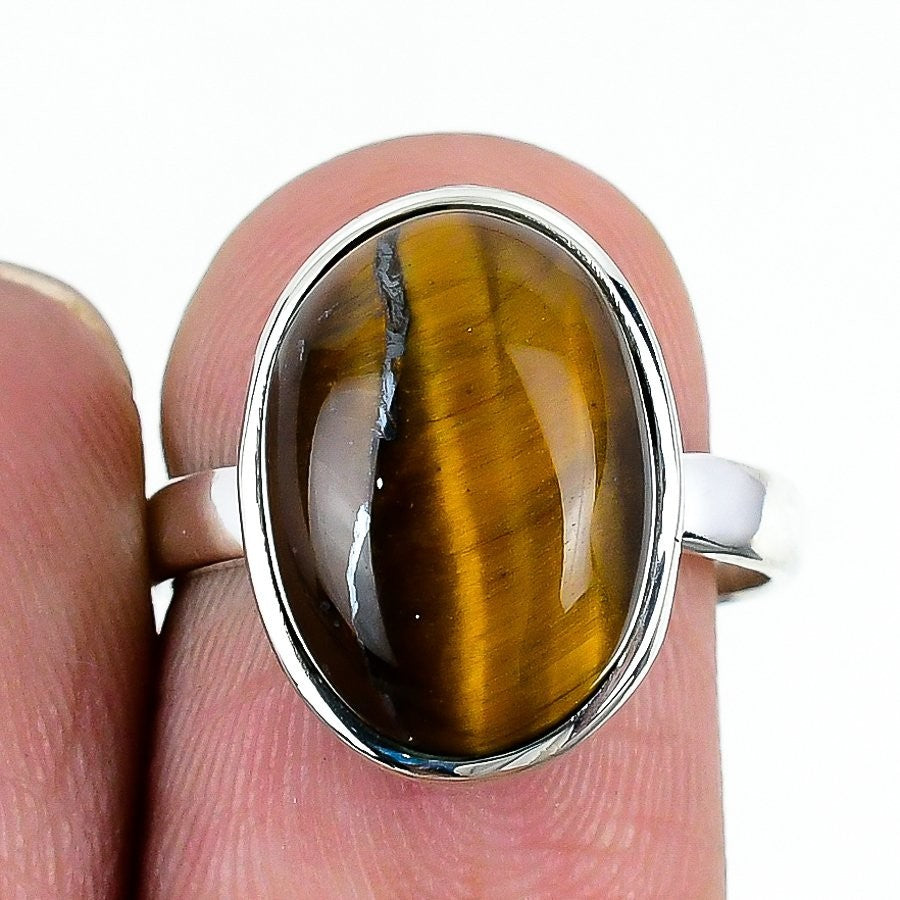 Sacral Chakra Tiger Eye Gemstone 925 Silver Statement Engagement New Ring US 7.5