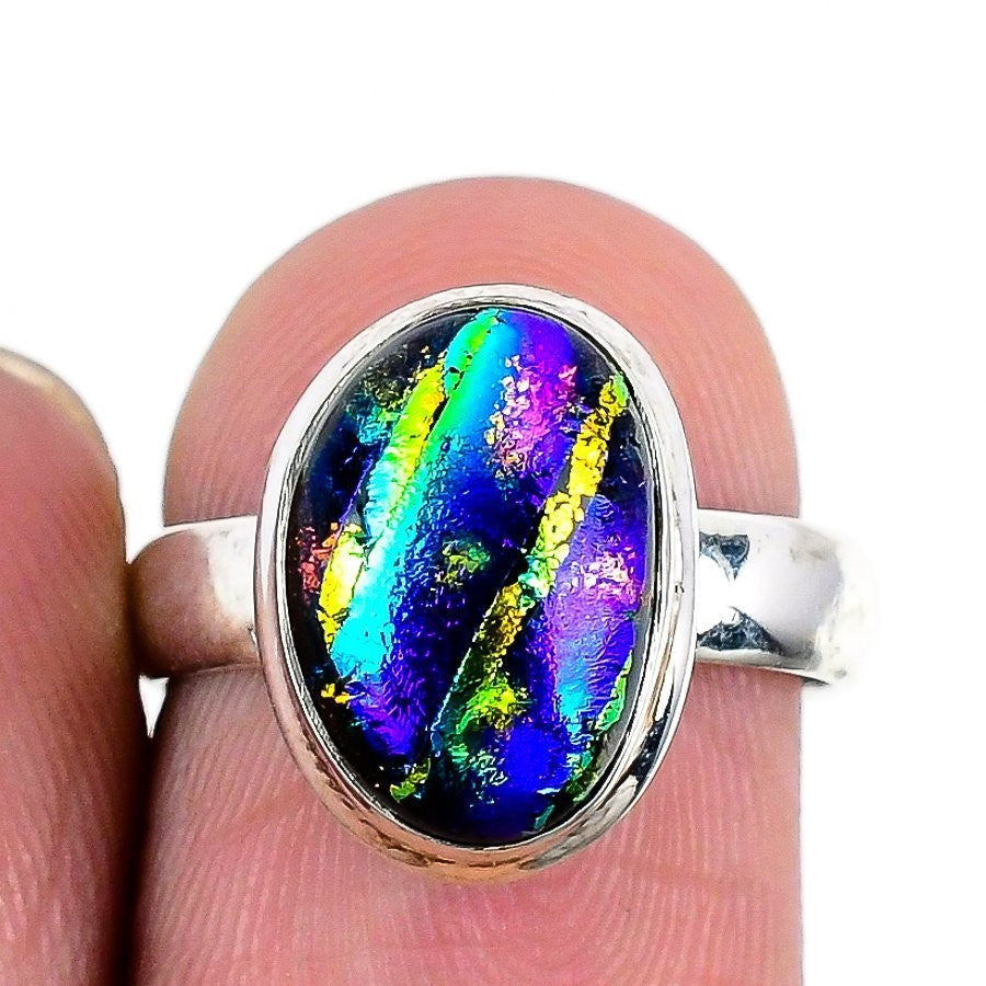 Natural Mexican Dico Glass Solid Silver Bezel Statement Daughter New Ring US 7