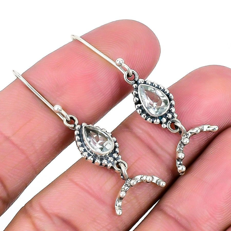 White Topaz Gemstone 925 Sterling Silver Dangling Hook Elegant Earrings Jewelry
