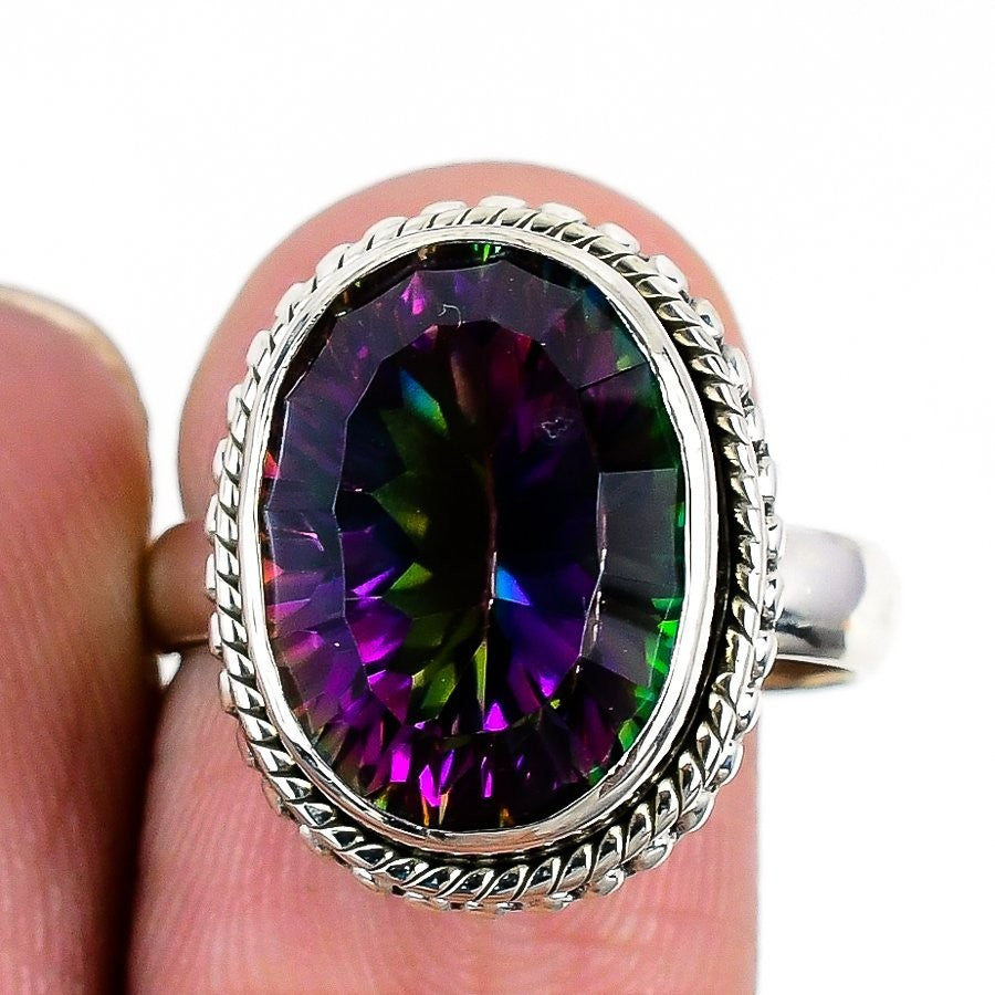 Mystic Topaz Stone Mother Statement Bezel New Ring Jewelry Solid Silver US 8.5