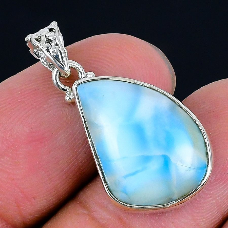 Republic Larimar Stone 925 Silver Unique Bezel Daughter Gift New Pendant Jewelry