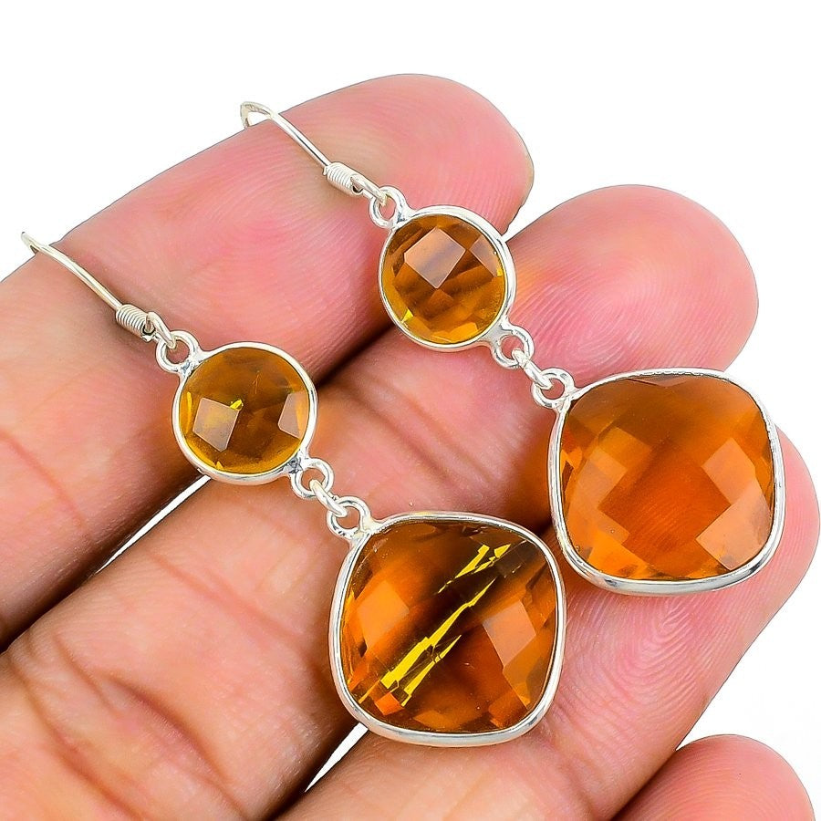 Natural Citrine Treated Drop Dangle Boho Earrings Jewelry Solid Sterling Silver