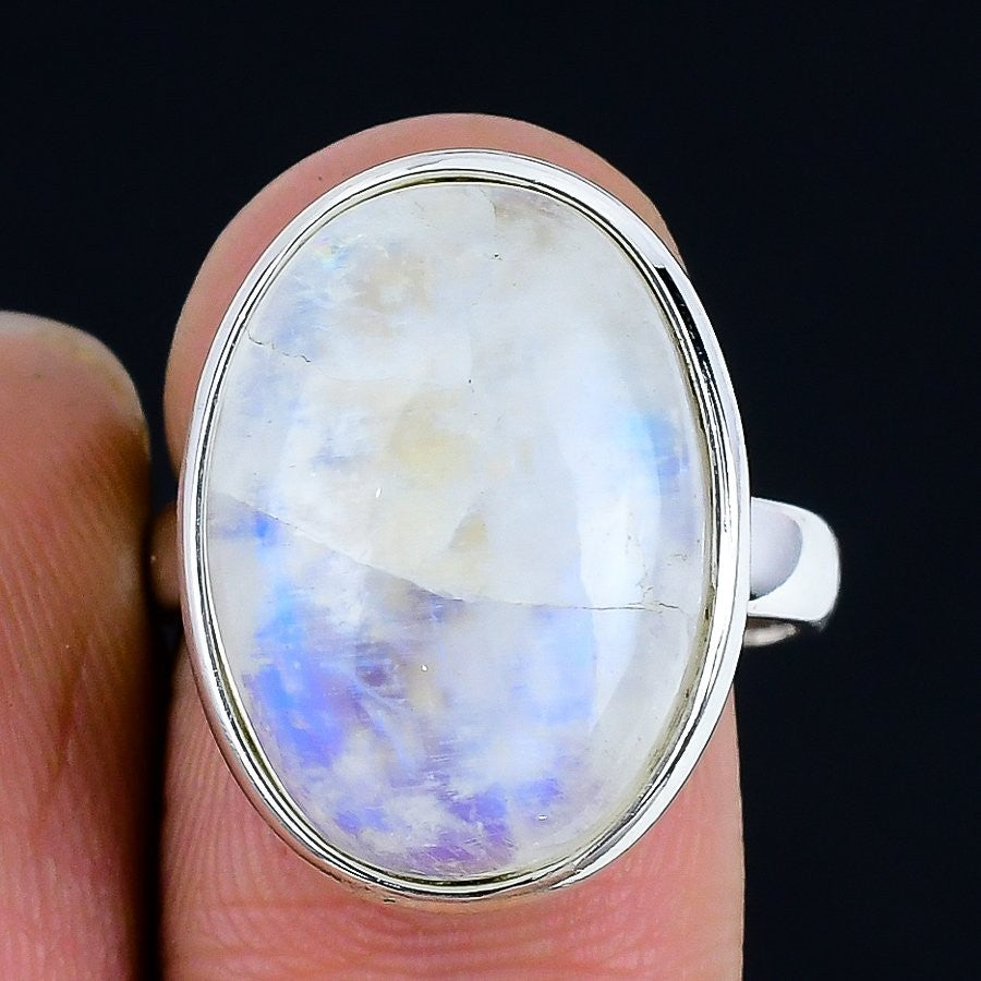Moonstone Gemstone 925 Silver Art Deco Statement Crown Chakra Bezel Ring US 8