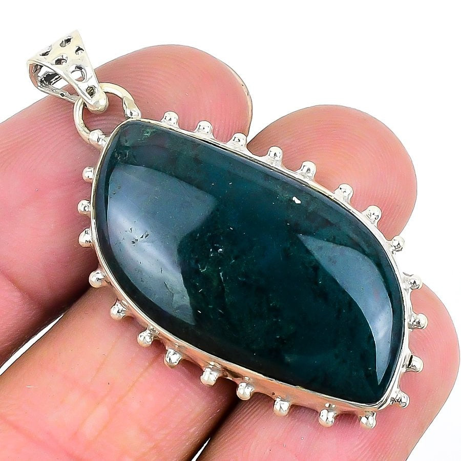 Natural Moss Agate 925Ā SolidĀ Silver Daughters Day Art Deco Boho Pendant Jewelry