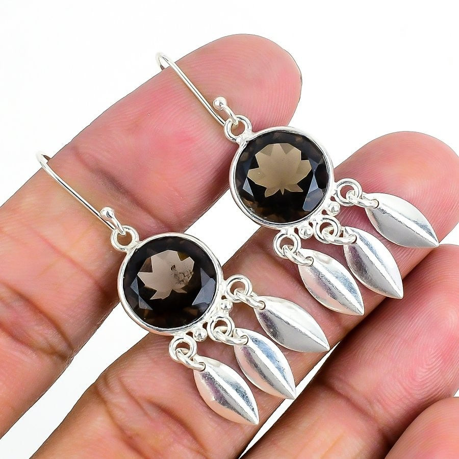 Smoky Topaz Stone Wedding Dangle Sister Earrings Jewelry Solid Sterling Silver