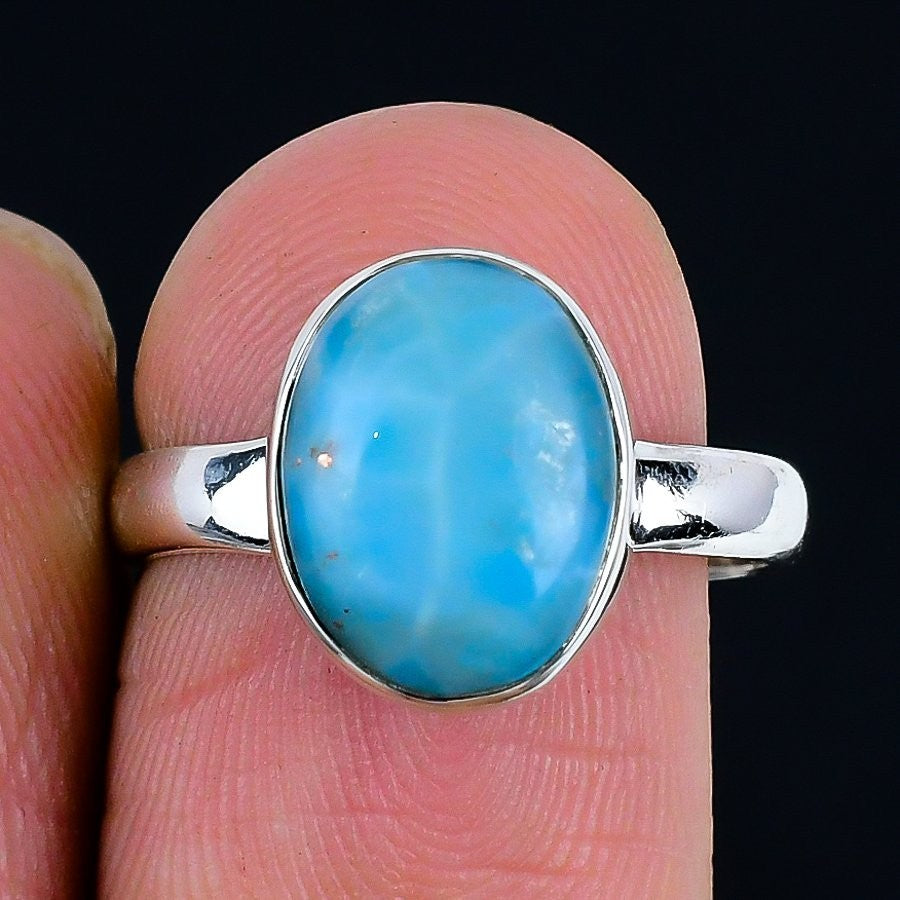 Republic Larimar Stone Solid Sterling Silver Wife Statement Engagement Ring US 8