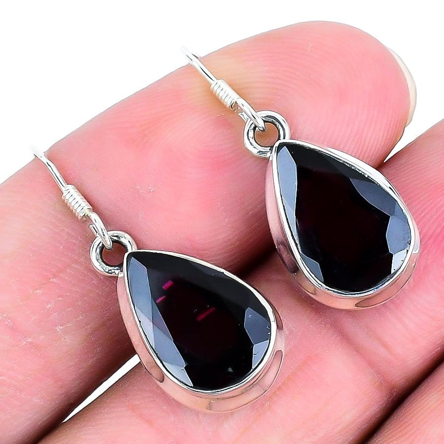 January Birth Natural Garnet 925 Silver Art Deco Drop Sister Wedding Earrings