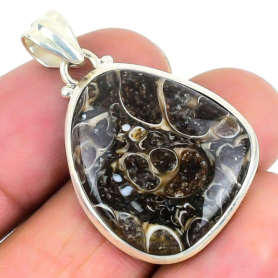 Turtilla Fossil Gemstone Solid Silver Wedding Handcrafted Trendy Pendant Jewelry