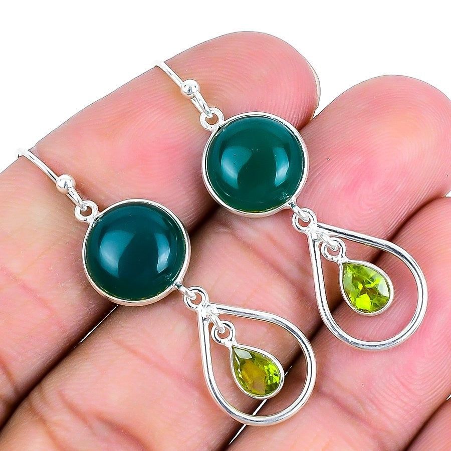 Daughters Day Sale Natural Green Onyx 925 Silver Dangle Anniversary New Earrings