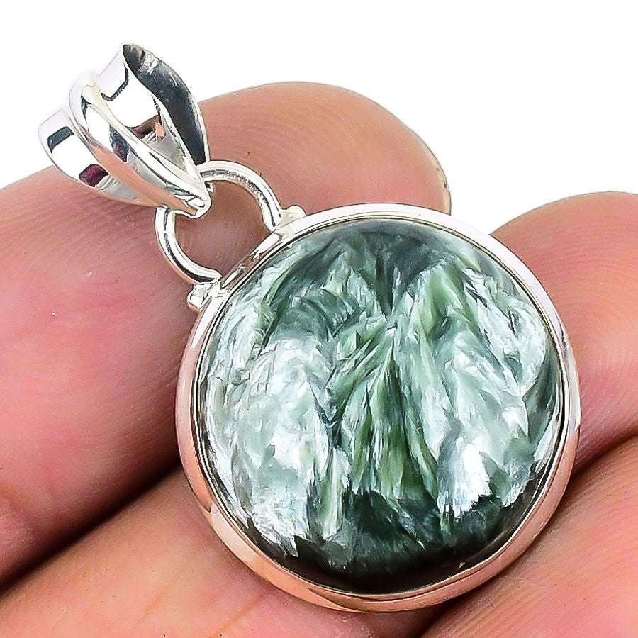 Seraphinite Stone 925Ā SolidĀ Silver Channel Set Anniversary Wife Pendant Jewelry