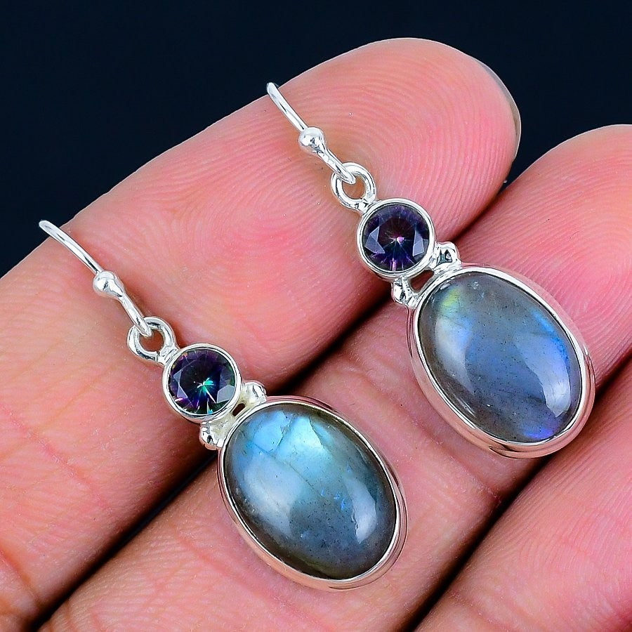 Labradorite Gemstone Solid Sterling Silver Dangling Daughters Day New Earrings