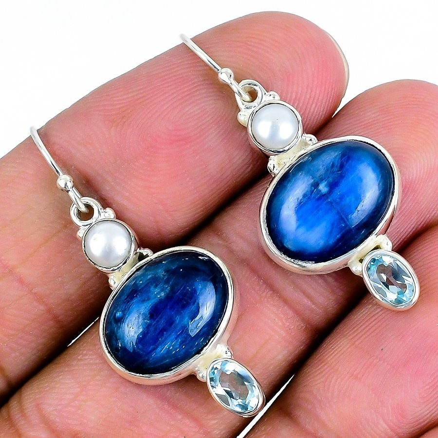 Blue Kyanite Gemstone Solid Silver Drop Dangle Daughters Day Earrings Jewelry