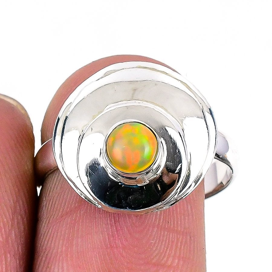 Natural Ethiopian Opal Bezel Wife Statement Ring Jewelry 925Ā SolidĀ Silver US 8.5
