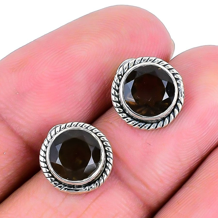 Smoky Topaz Stone Solid Silver Anniversary Wedding Stud Post Daughter Earrings