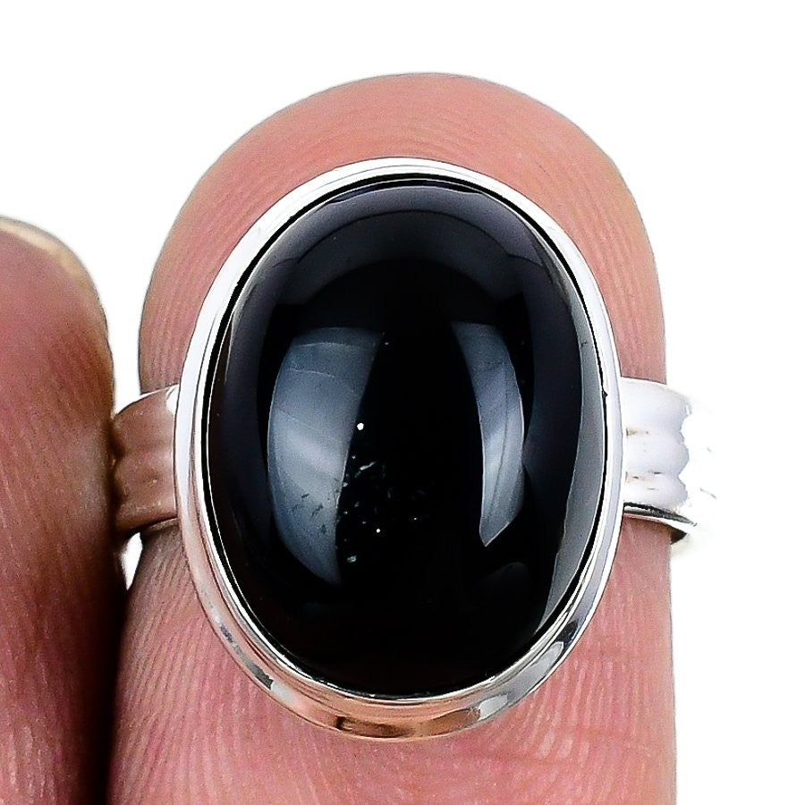 Black Onyx Gemstone Daughters Day Statement Ring Solid Sterling Silver US 6.5