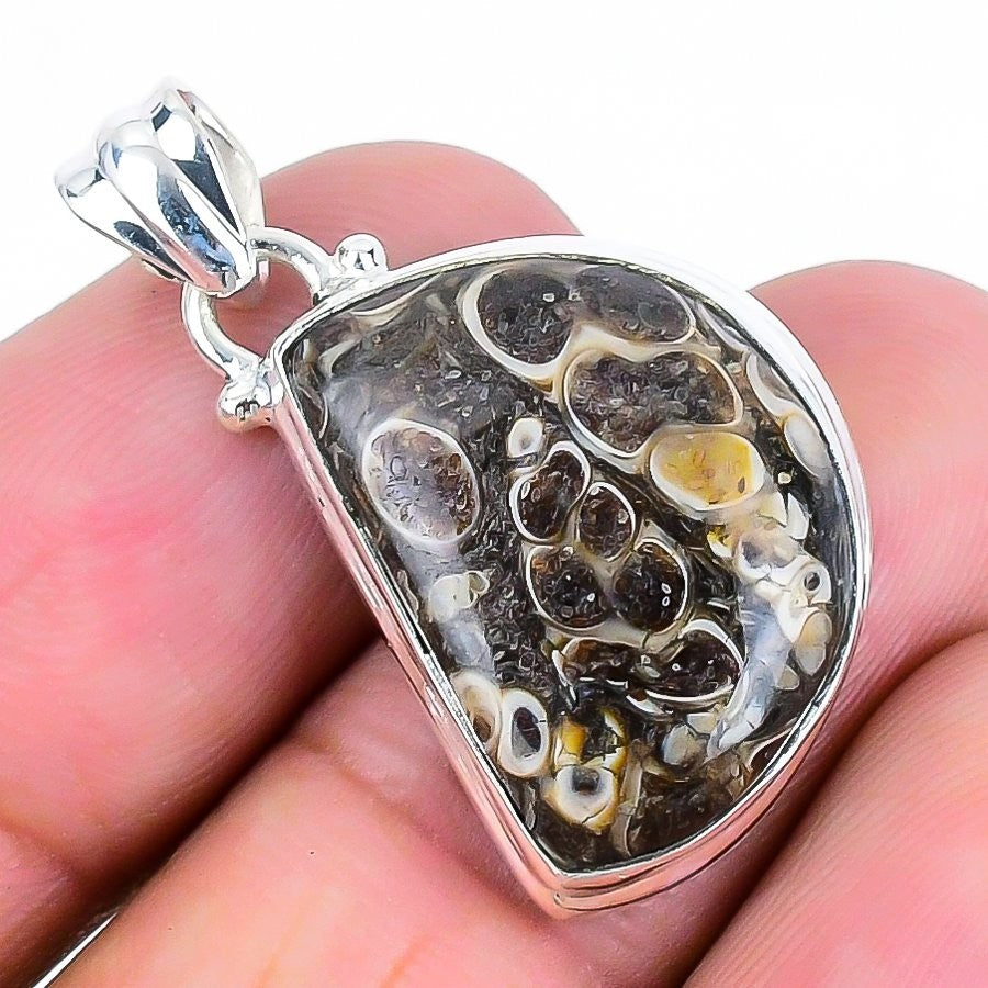 Natural Turritella Fossil Solid Silver Mother Daughter Gift New Pendant Jewelry