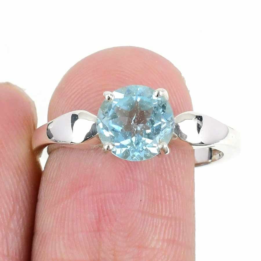 Swiss Blue topaz Stone 925 Sterling Silver Birthday Cluster Unique Daughter Ring