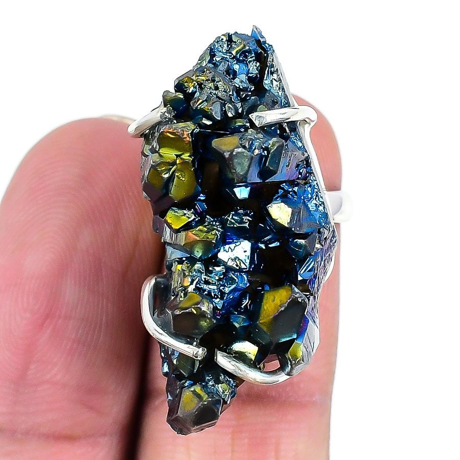 Titanium Druzy Gemstone Statement Elegant Ring Jewelry 925 Sterling Silver US 6