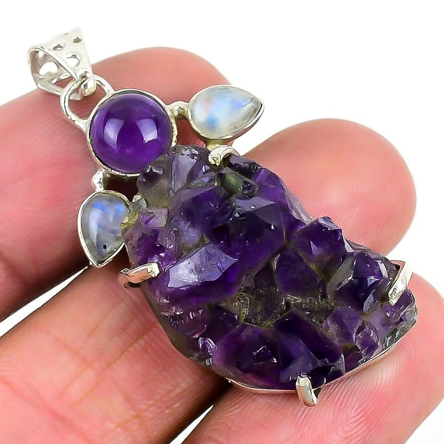 Amethyst Druzy Stone Solid Sterling Silver Best Daughters Gift Pendant Jewelry